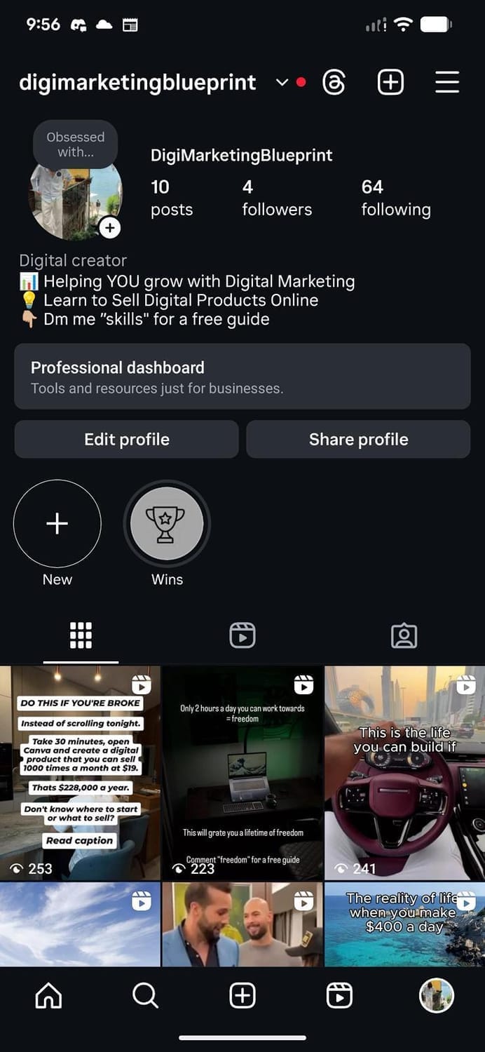 All I did was message people on Instagram who were in high ticket and tried to DM setting for them while I was just randomly posting marketing content on other accounts and trying to figure out how to get sales.